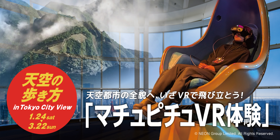 We have added an area where you can experience Machu Picchu, the mysterious sky city of the ancient Inca Empire, using the latest VR technology. Experience the grandeur and mystery of the ruins with a sense of realism that makes you feel as if you're actually there. Experience it together with the Tokyo City View (Observation Deck). (Offered in both Japanese and English)
