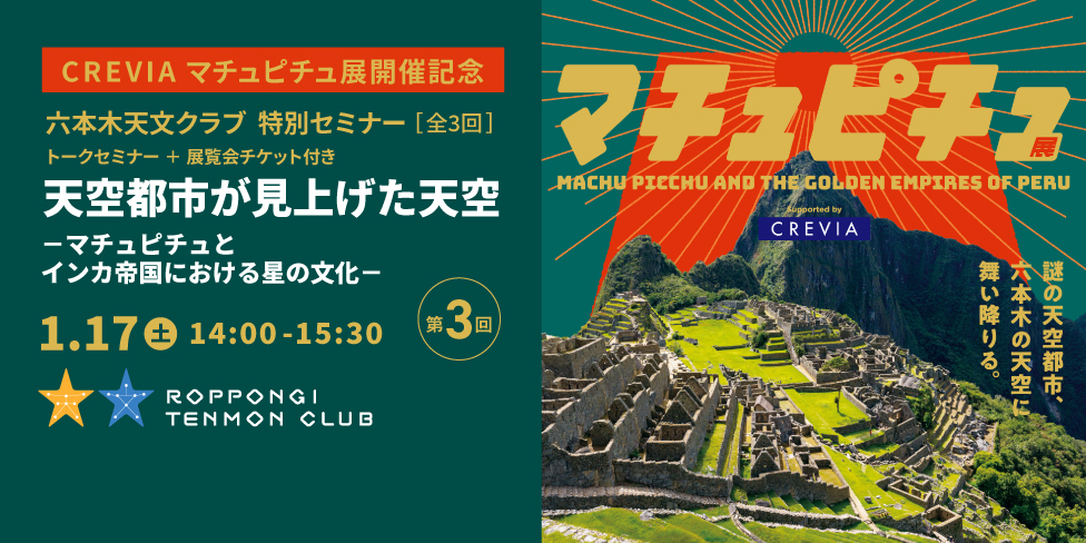 「六本木天文クラブ 特別セミナー」CREVIA マチュピチュ展コラボ トークイベント(全3回)